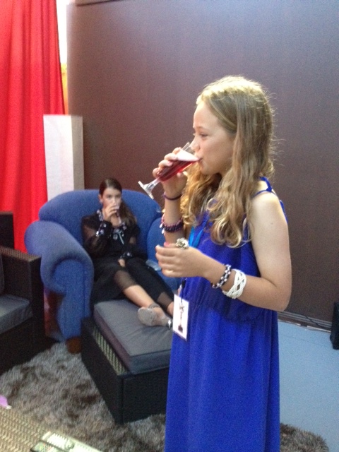 They posed for the Paparazzi and then made their way in to the Green Room (or in this case, Red) to indulge in a little Champagne (non-alcoholic) before making their way into the sound booth to lay down a track!